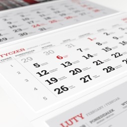 Nasze trójdzielne kalendarze to popularna forma reklamy. Do wyboru: główka płaska lub wypukła - kaszerowana. Możliwość zastosowania doklejki to dodatkowe miejsce na reklamę, zaś wybór kalendarza Prostego - duża oszczędność. Istnieje możliwość pokrycia główki kalendarza lakierem UV.