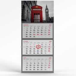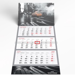 - Standard. Standardowy kalendarz trójdzielny z możliwości wykonania doklejki reklamowej u dołu kalendarza.