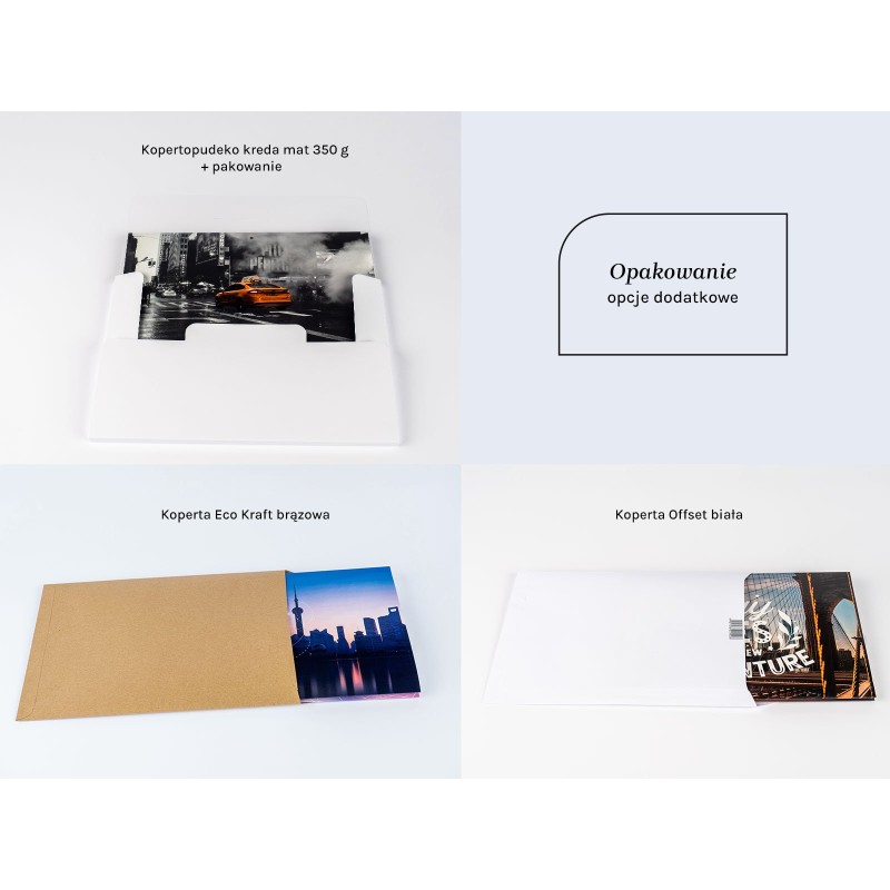 Produkt uszlachetniany jest z jednej strony matową folią, która nadaje mu elegancji i szyku. Folia mat wycisza nieco kolory i sprawia, że są mniej jaskrawe. Podłoże papierowe uszlachetnione folią mat, poza swoimi walorami estetycznymi, ma większą wytrzymałość.